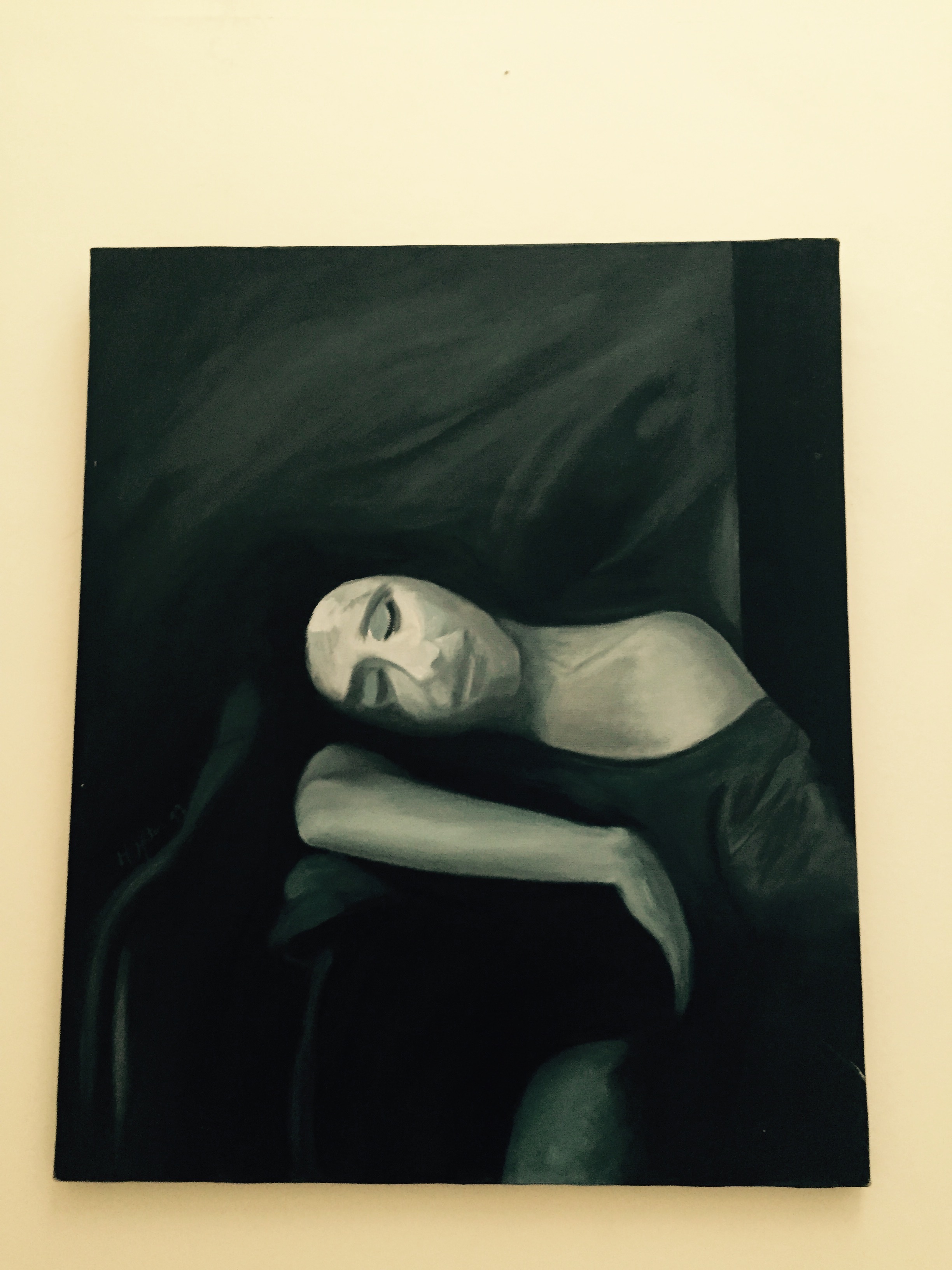 An example is below. Every time I look at this painting, I feel an immense urge to paint a bright pink flower on her head. I might just do that one day.